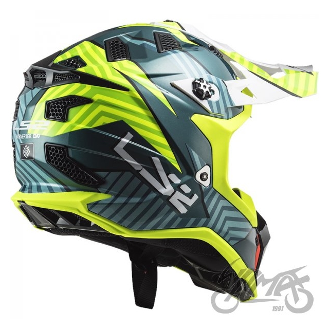 Kask spełnia wymagania zawodów motocyklowych, oraz posiada regulowane położenie daszku